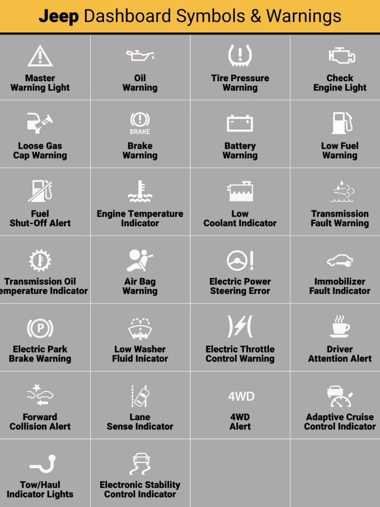 Jeep Dashboard Symbols and Warning Lights at a Glance