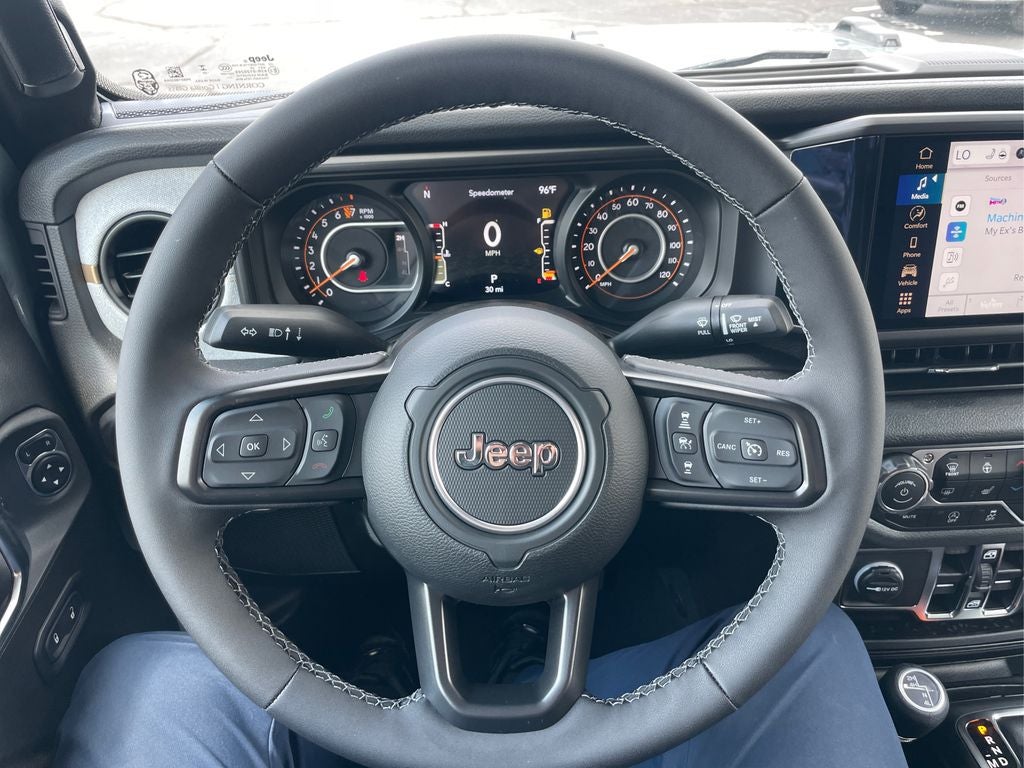 Dark Sky Appearance Package: Mold in Color Bumper with Gloss Black; 2-Piece Body Color Fender Flares; Daytime Running Lamp System; Performance Hood. Convenience Group: Emergency/assistance Call; Front Door Locks 2-Door Passive Entry; 2-Piece Body Color Fender Flares; Remote Start System; Cluster 7.0" TFT Color Display; Universal Garage Door Opener; Daytime Running Lamp System; Heated Front Seats; Air Conditioning with Auto Temp Control; Heated Steering Wheel; Corning Gorilla Glass. Quick Order Package 24S Sport S: Advanced Brake Assist; 17" X 7.5" Gray Wheels; Power Heated Mirrors; Enhanced Adaptive Cruise Control; Automatic Headlamps; Normal Duty Plus Suspension; Deep Tint Sunscreen Windows; Premium Wrapped Steering Wheel; Security Alarm; Sun Visors with Illuminated Vanity Mirrors; Full Speed Forward Collision Warning Plus. Black 3-Piece Hard Top. Anvil Clearcoat. MOPAR Spray in Bedliner. **Equipment listed is based on original vehicle build and subject to change. Please confirm the accuracy of the included equipment by calling the dealer prior to purchase.**
