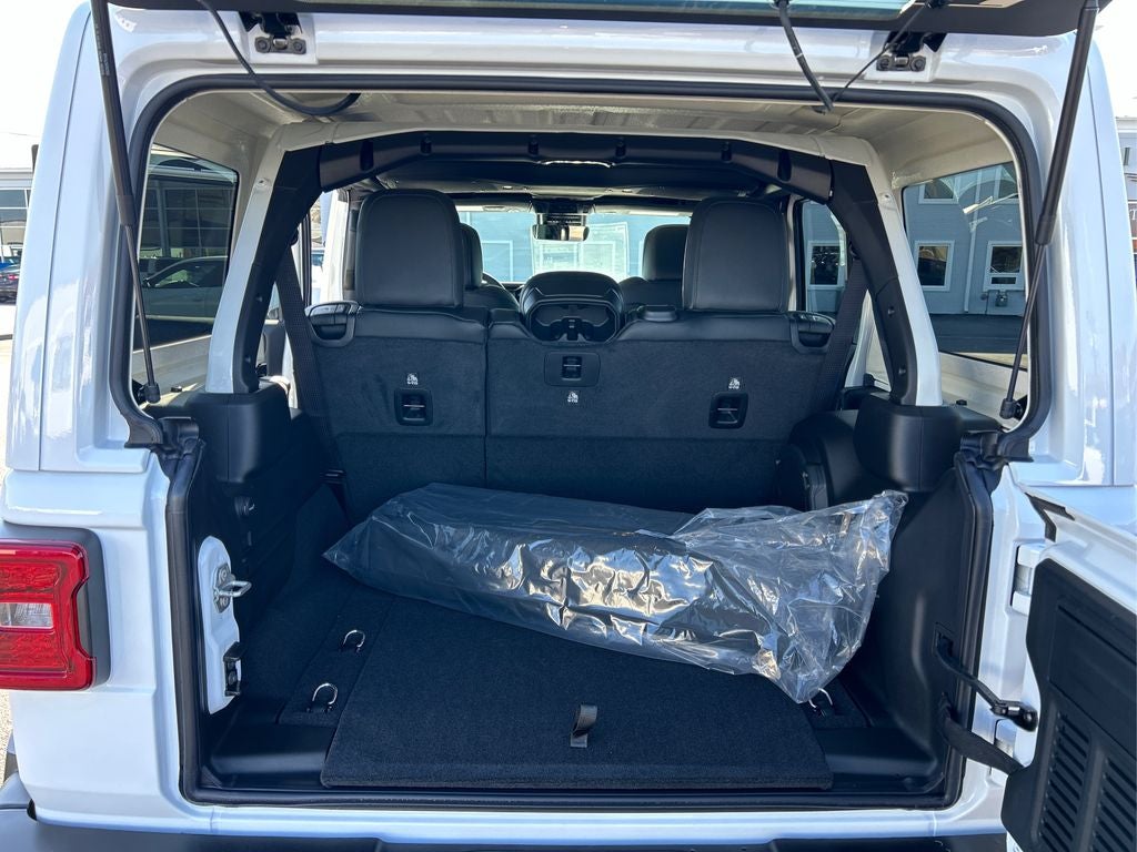 Safety Group: Auto High Beam Headlamp Control; Blind Spot and Cross Path Detection; ParkSense Rear Park Assist System. Technology Group: Google Android Auto; SiriusXM Radio Service; 12.3" Touchscreen Display; Alpine Premium Audio System; Integrated Off-Road Camera; HD Radio; Rear View Auto Dim Mirror; Integrated Voice Command with Bluetooth®; Connectivity - US/Canada; Uconnect 5 Navigation with 12.3" Display; GPS Navigation; 4G LTE Wi-Fi Hot Spot; SiriusXM with 360L; Universal Garage Door Opener; Connected Travel and Traffic Services; Apple CarPlay. Quick Order Package 24G Sahara. Mckinley Trimmed Seats. Body Color 3-Piece Hard Top. MOPAR All-Weather Floor Mats. Side Steps. **Equipment listed is based on original vehicle build and subject to change. Please confirm the accuracy of the included equipment by calling the dealer prior to purchase.**