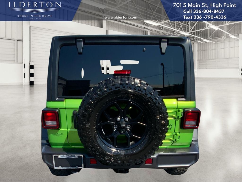 The Jeep Wrangler's Forward Collision Warning system alerts the driver to potential front-end collisions, enhancing safety. This mid-size suv has auto-adjust speed for safe following. See what's behind you with the back up camera on this vehicle. Apple CarPlay: Seamless smartphone integration for this mid-size suv - stay connected and entertained on the go! This Jeep Wrangler features a hands-free Bluetooth® phone system. This vehicle offers Android Auto for seamless smartphone integration. When you encounter slick or muddy roads, you can engage the four wheel drive on this Jeep Wrangler and drive with confidence. This unit has a 4 Cyl, 2.0L high output engine. This model shines with a refined green finish. Electronic Stability Control is one of many advanced safety features on it. Easily set your speed in this mid-size suv with a state of the art cruise control system. Increase or decrease velocity with the touch of a button.