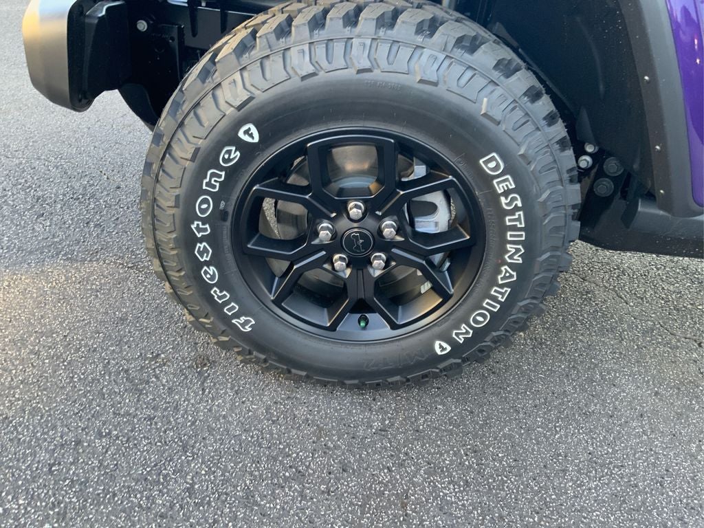Convenience Group: Emergency/Assistance Call; Front Door Locks 2-Door Passive Entry; Remote Start System; Body Color Fender Flares (2-Piece); Cluster 7.0" TFT Color Display; Universal Garage Door Opener; Daytime Running Lamp System; Heated Front Seats; Air Conditioning W/Auto Temp Control; Heated Steering Wheel; Corning Gorilla Glass. Quick Order Package 24W Willys: LED Taillamps; Protection Sill Rails; 4-Wheel Drive Decal; Black Grille; MOPAR All-Weather Slush Mats; LT255/75R17C OWL On/Off Road Tires; Body Color Fender Flares (2-Piece); Front Heavy Duty Red Accent Shock Absorbers; Daytime Running Lamps LED Accents; Front LED Fog Lamps; LED Premium Reflector Headlamps; E-Locker Rear Axle; Corning Gorilla Glass; Trailer Hitch Zoom; Class IV Receiver Hitch; Security Alarm; Mold In Color Bumper W/Gloss Black; Advanced Brake Assist; Willys Suspension; Heavy Duty Engine Cooling; Automatic Headlamps; Air Conditioning W/Auto Temp Control; 5. 950 lbs GVWR; Deep Tint Sunscreen Windows; Off-Road Plus Mode; 17" X 7.5" Painted Black Wheels; Willys Hood Decal; Full Speed Forward Collision Warning Plus; Rear Heavy Duty Red Accent Shock Absorbers; Front Door Locks 2-Door Passive Entry; Cluster 7.0" TFT Color Display; Power Heated Mirrors; Auxiliary Switches; Premium Wrapped Steering Wheel; Sun Visors W/Illuminated Vanity Mirrors. Black 3-Piece Hard Top. Reign. MOPAR Spray In Bedliner. MyFlexCare Service Plan. **Equipment listed is based on original vehicle build and subject to change. Please confirm the accuracy of the included equipment by calling the dealer prior to purchase.**
