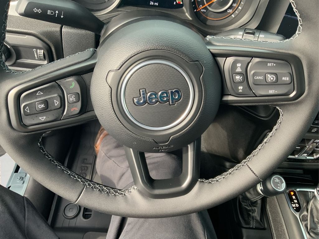 Apple CarPlay: Seamless smartphone integration for the vehicle - stay connected and entertained on the go! It comes equipped with Android Auto for seamless smartphone integration on the road. Start the vehicle from inside with remote start. Bluetooth® technology is built into it, keeping your hands on the steering wheel and your focus on the road. This mid-size suv is pure luxury with a heated steering wheel. This model has automated speed control that adjusts to maintain a safe following distance, enhancing highway driving convenience. This mid-size suv's Forward Collision Warning system alerts the driver to potential front-end collisions, enhancing safety. An off-road package is equipped on this Jeep Wrangler. Protect the Jeep Wrangler from unwanted accidents with a cutting edge backup camera system. This vehicle offers Automatic Climate Control for personalized comfort. Maintaining a stable interior temperature in this mid-size suv is easy with the climate control system. This 2026 Jeep Wrangler emanates grace with its stylish gray exterior.
