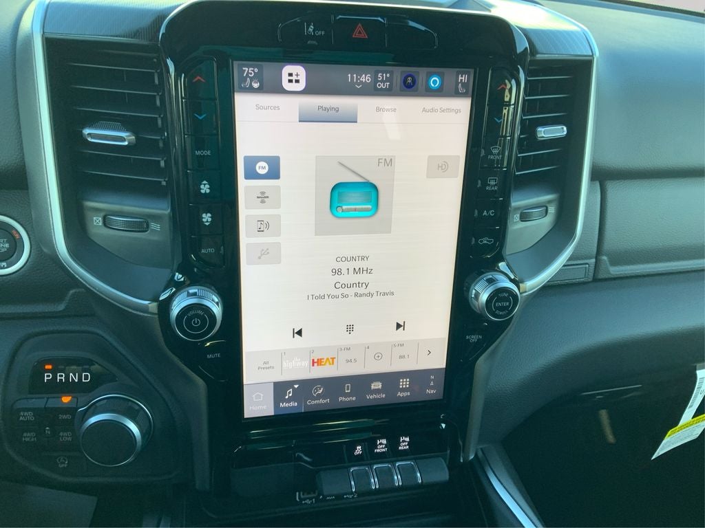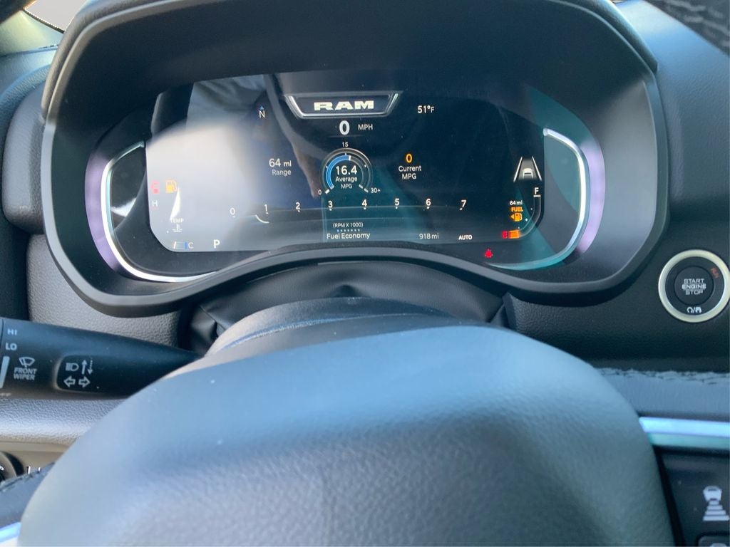 Quick Order Package 27Z Big Horn. Big Horn Level 2 Equipment Group: Google Android Auto; SiriusXM Radio Service; USB Host Flip; Power Adjustable Pedals; Leather Wrapped Steering Wheel; Integrated Voice Command with Bluetooth®; 12" Touchscreen Display; Glove Box Lamp; Auto Power-Folding Mirrors; 115V Auxiliary Rear Power Outlet; Media Hub with 2 Charge Only USBs; Heated Front Seats; Security Alarm; Black Premium Power Mirrors; Apple CarPlay; Premium Overhead Console; 9 Amplified Speakers with Subwoofer; Disassociated Touchscreen Display; Body Color Fender Flares; Remote Tailgate Release; 115V Auxiliary Power Outlet; LED Dome Lamp with On/off Switch; Universal Garage Door Opener; 2nd Row in Floor Storage Bins; Sun Visors with Illuminated Vanity Mirrors; LED Footwell Lighting; Rear Window Defroster; Integrated Center Stack Radio; Rear View Auto Dim Mirror; Rear Power Sliding Window; Connectivity - US/Canada; GPS Navigation; 4G LTE Wi-Fi Hot Spot; GPS Antenna Input; Overhead LED Lamps; Exterior Mirrors with Heating Element; Auto Dim Exterior Driver Mirror; SiriusXM with 360L; Global Telematics Box Module; Connected Travel and Traffic Services; Heated Steering Wheel; Configurable Drive Mode; 400W Inverter; HD Radio; Deluxe Cloth Bucket Seats; Uconnect 5 Navigation with 12.0" Display Radio; Exterior Mirrors with Supplemental Signals; Steering Wheel Mounted Audio Controls; Exterior Mirrors Courtesy Lamps; Air Conditioning ATC with Dual Zone Control; Cluster 7.0" TFT Color Display; Convex Wide-Angle Exterior Mirror Insert. Night Edition: 275/55R20 OWL All Season Tires; Accent Color Premium Power Mirrors; Exterior Mirrors with Supplemental Signals; Black Headlamp Bezels; Exterior Mirrors Courtesy Lamps; Grille Black Surround Black Mesh; Auto Power-Folding Mirrors; Exterior Mirrors with Heating Element; 20" X 9.0" Aluminum Painted Clad Wheels; Auto Dim Exterior Driver Mirror; Black Exterior Truck Badging; Anti-Spin Differential Rear Axle; Accent Color Door Handles; Accent Color Tailgate Handle; Black Interior Accents; Dual Exhaust with Black Tips; Body Color Front Bumper; Convex Wide-Angle Exterior Mirror Insert; Body Color Rear Bumper with Step Pads; Black Tail Lamp Bezels; RAM Grille Badge - Black; Black Painted Exterior Mirrors Caps. Quick Order Package 23Z Big Horn. 9 Amplified Speakers with Subwoofer. Anti-Spin Differential Rear Axle. 33 Gallon Fuel Tank. Cluster 12" TFT Color Display. 3.92 Rear Axle Ratio. Rear Wheelhouse Liners. **Equipment listed is based on original vehicle build and subject to change. Please confirm the accuracy of the included equipment by calling the dealer prior to purchase.**