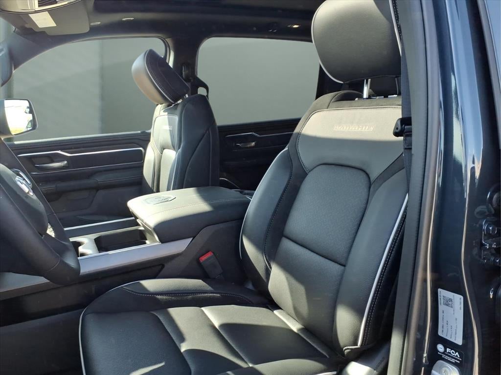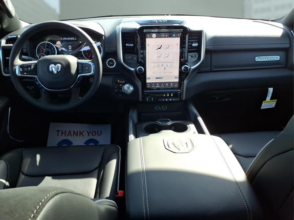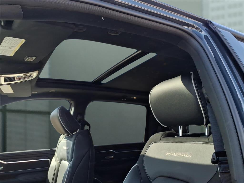 Quick Order Package 27H Laramie. Laramie Level 1 Equipment Group: Remote Tailgate Release; Rain Sensitive Windshield Wipers. Night Edition: Black Headlamp Bezels; Auto Power-Folding Mirrors; 22" X 9" Forged Aluminum Wheels; Exterior Mirrors with Heating Element; Proximity Approach/departure Lamps; Auto Dim Exterior Driver Mirror; Anti-Spin Differential Rear Axle; Accent Color Door Handles; Black Interior Accents; Body Color Front Bumper; Grille Surround 3 Black Texture 2 Black; Body Color Rear Bumper with Step Pads; RAM Grille Badge - Black; Black Painted Exterior Mirrors Caps; Exterior Mirrors Approach Lamps; Accent Color Premium Power Mirrors; Exterior Mirrors with Supplemental Signals; Sport Performance Hood; Exterior Mirrors Courtesy Lamps; Black Exterior Truck Badging; Accent Color Tailgate Handle; Exterior Mirrors with Memory; Dual Exhaust with Black Tips; Convex Wide-Angle Exterior Mirror Insert; Black Tail Lamp Bezels. 22" X 9" Forged Aluminum Wheels. Dual-Pane Panoramic Sunroof. Anti-Spin Differential Rear Axle. Trailer Brake Control. Forged Blue Metallic. MyFlexCare Service Plan. MOPAR Front and Rear Rubber Floor Mats. 3.92 Rear Axle Ratio. **Equipment listed is based on original vehicle build and subject to change. Please confirm the accuracy of the included equipment by calling the dealer prior to purchase.**