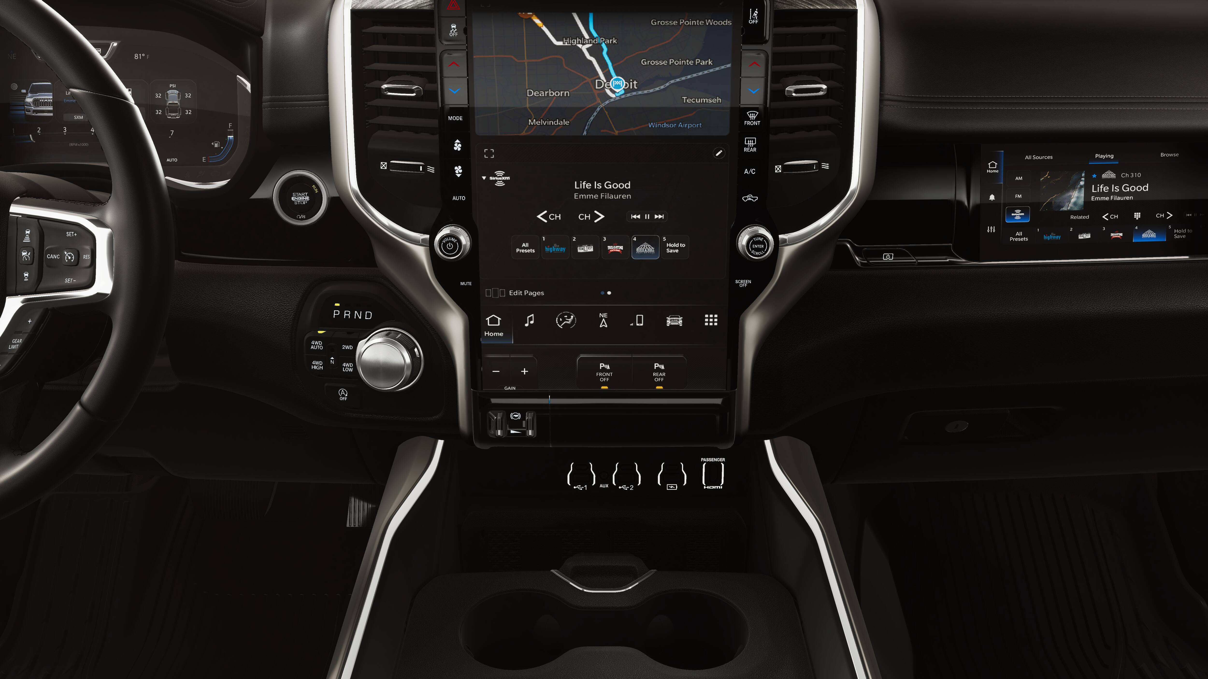 Quick Order Package 27H Laramie. Laramie Level 2 Equipment Group: SiriusXM Radio Service; USB Host Flip; Rain Sensitive Windshield Wipers; 14.4" Touchscreen Display; Integrated Center Stack Radio; Front Passenger Interactive Display; Integrated Voice Command with Bluetooth®; Connectivity - US/Canada; Uconnect 5 Nav with 14.4" Display; GPS Navigation; 4G LTE Wi-Fi Hot Spot; Harman/kardon 19 Speaker Premium Sound; SiriusXM with 360L; Connected Travel and Traffic Services; Cluster 12" TFT Color Display; Power Tailgate. Bed Utility Group: MOPAR Spray in Bedliner; MOPAR Deployable Bed Step; MOPAR 4 Adjustable Cargo Tie-Down Hooks; Exterior 115V AC Outlet. Laramie Preferred Package: Accent Color Premium Power Mirrors; Exterior Mirrors with Supplemental Signals; Power Deployable Running Boards; Exterior Mirrors Courtesy Lamps; RAM Grille Badge - Chrome; Auto Power-Folding Mirrors; Grille Surround 3 Body Color Tex 4 Chrome; Exterior Mirrors with Heating Element; Auto Dim Exterior Driver Mirror; Trailer Brake Control; Exterior Mirrors with Memory; Tow Hooks; Body Color Front Bumper; Convex Wide-Angle Exterior Mirror Insert; Dual-Pane Panoramic Sunroof; Body Color Rear Bumper with Step Pads; Black Painted Exterior Mirrors Caps. Dual-Pane Panoramic Sunroof. Power Deployable Running Boards. Trailer Brake Control. Granite Crystal Met CC. MyFlexCare Service Plan. MOPAR Front and Rear Rubber Floor Mats. 3.92 Rear Axle Ratio. **Equipment listed is based on original vehicle build and subject to change. Please confirm the accuracy of the included equipment by calling the dealer prior to purchase.**
