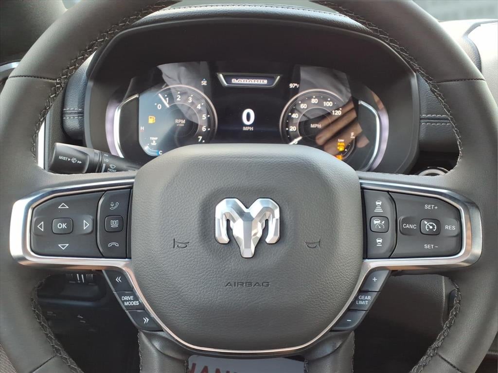 Quick Order Package 27H Laramie. Laramie Level 2 Equipment Group: SiriusXM Radio Service; USB Host Flip; Rain Sensitive Windshield Wipers; 14.4" Touchscreen Display; Integrated Center Stack Radio; Front Passenger Interactive Display; Integrated Voice Command with Bluetooth®; Connectivity - US/Canada; Uconnect 5 Nav with 14.4" Display; GPS Navigation; 4G LTE Wi-Fi Hot Spot; Harman/kardon 19 Speaker Premium Sound; SiriusXM with 360L; Connected Travel and Traffic Services; Cluster 12" TFT Color Display; Power Tailgate. Night Edition: Black Headlamp Bezels; Auto Power-Folding Mirrors; 22" X 9" Forged Aluminum Wheels; Exterior Mirrors with Heating Element; Proximity Approach/departure Lamps; Auto Dim Exterior Driver Mirror; Anti-Spin Differential Rear Axle; Accent Color Door Handles; Black Interior Accents; Body Color Front Bumper; Grille Surround 3 Black Texture 2 Black; Body Color Rear Bumper with Step Pads; RAM Grille Badge - Black; Black Painted Exterior Mirrors Caps; Exterior Mirrors Approach Lamps; Accent Color Premium Power Mirrors; Exterior Mirrors with Supplemental Signals; Sport Performance Hood; Exterior Mirrors Courtesy Lamps; Black Exterior Truck Badging; Accent Color Tailgate Handle; Exterior Mirrors with Memory; Dual Exhaust with Black Tips; Convex Wide-Angle Exterior Mirror Insert; Black Tail Lamp Bezels. Bed Utility Group: MOPAR Spray in Bedliner; MOPAR Deployable Bed Step; MOPAR 4 Adjustable Cargo Tie-Down Hooks; Exterior 115V AC Outlet. 22" X 9" Forged Aluminum Wheels. Dual-Pane Panoramic Sunroof. MOPAR Black Tubular Side Steps. Anti-Spin Differential Rear Axle. MyFlexCare Service Plan. MOPAR Front and Rear Rubber Floor Mats. 3.92 Rear Axle Ratio. **Equipment listed is based on original vehicle build and subject to change. Please confirm the accuracy of the included equipment by calling the dealer prior to purchase.**