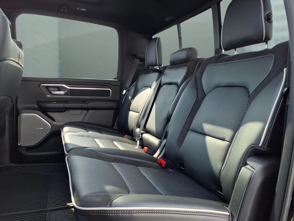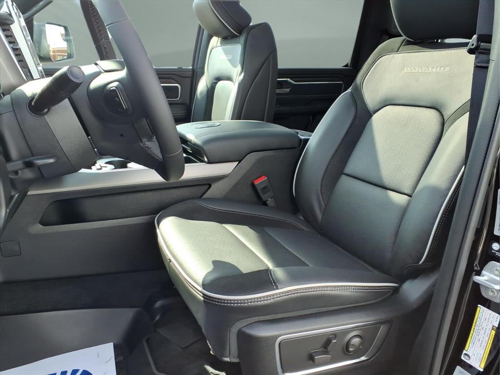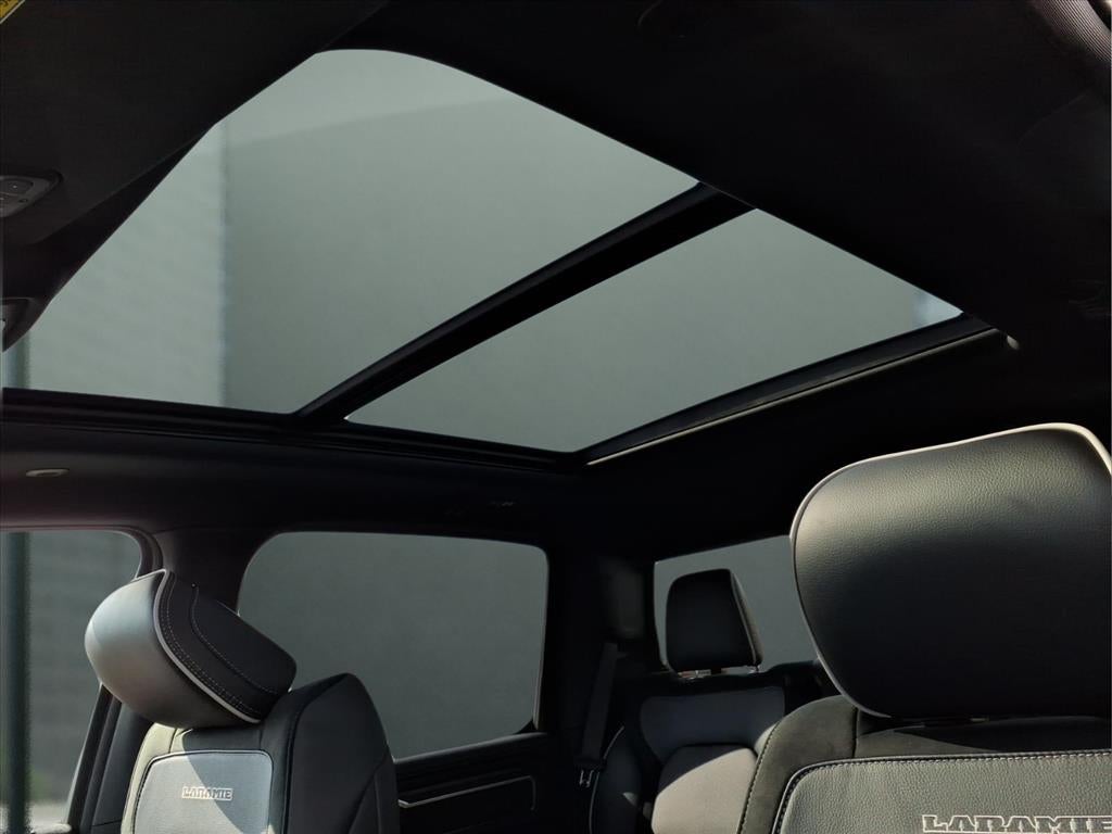 Quick Order Package 27H Laramie. Laramie Level 2 Equipment Group: SiriusXM Radio Service; USB Host Flip; Rain Sensitive Windshield Wipers; 14.4" Touchscreen Display; Integrated Center Stack Radio; Front Passenger Interactive Display; Integrated Voice Command with Bluetooth®; Connectivity - US/Canada; Uconnect 5 Nav with 14.4" Display; GPS Navigation; 4G LTE Wi-Fi Hot Spot; Harman/kardon 19 Speaker Premium Sound; SiriusXM with 360L; Connected Travel and Traffic Services; Cluster 12" TFT Color Display; Power Tailgate. Night Edition: Black Headlamp Bezels; Auto Power-Folding Mirrors; 22" X 9" Forged Aluminum Wheels; Exterior Mirrors with Heating Element; Proximity Approach/departure Lamps; Auto Dim Exterior Driver Mirror; Anti-Spin Differential Rear Axle; Accent Color Door Handles; Black Interior Accents; Body Color Front Bumper; Grille Surround 3 Black Texture 2 Black; Body Color Rear Bumper with Step Pads; RAM Grille Badge - Black; Black Painted Exterior Mirrors Caps; Exterior Mirrors Approach Lamps; Accent Color Premium Power Mirrors; Exterior Mirrors with Supplemental Signals; Sport Performance Hood; Exterior Mirrors Courtesy Lamps; Black Exterior Truck Badging; Accent Color Tailgate Handle; Exterior Mirrors with Memory; Dual Exhaust with Black Tips; Convex Wide-Angle Exterior Mirror Insert; Black Tail Lamp Bezels. Bed Utility Group: MOPAR Spray in Bedliner; MOPAR Deployable Bed Step; MOPAR 4 Adjustable Cargo Tie-Down Hooks; Exterior 115V AC Outlet. 22" X 9" Forged Aluminum Wheels. Dual-Pane Panoramic Sunroof. Anti-Spin Differential Rear Axle. 33 Gallon Fuel Tank. Trailer Brake Control. Diamond Black Crystal PC. MyFlexCare Service Plan. MOPAR Front and Rear Rubber Floor Mats. 3.92 Rear Axle Ratio. **Equipment listed is based on original vehicle build and subject to change. Please confirm the accuracy of the included equipment by calling the dealer prior to purchase.**