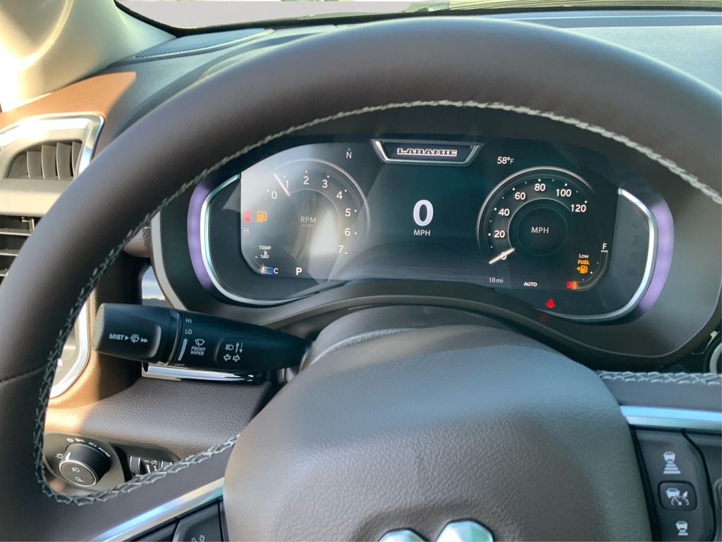 Quick Order Package 27H Laramie. Laramie Level 2 Equipment Group: SiriusXM Radio Service; USB Host Flip; Rain Sensitive Windshield Wipers; 14.4" Touchscreen Display; Integrated Center Stack Radio; Front Passenger Interactive Display; Integrated Voice Command with Bluetooth®; Connectivity - US/Canada; Uconnect 5 Nav with 14.4" Display; GPS Navigation; 4G LTE Wi-Fi Hot Spot; Harman/kardon 19 Speaker Premium Sound; SiriusXM with 360L; Connected Travel and Traffic Services; Cluster 12" TFT Color Display; Power Tailgate. Bed Utility Group: MOPAR Spray in Bedliner; MOPAR Deployable Bed Step; MOPAR 4 Adjustable Cargo Tie-Down Hooks; Exterior 115V AC Outlet. Laramie Preferred Package: Accent Color Premium Power Mirrors; Exterior Mirrors with Supplemental Signals; Power Deployable Running Boards; Exterior Mirrors Courtesy Lamps; RAM Grille Badge - Chrome; Auto Power-Folding Mirrors; Grille Surround 3 Body Color Tex 4 Chrome; Exterior Mirrors with Heating Element; Auto Dim Exterior Driver Mirror; Trailer Brake Control; Exterior Mirrors with Memory; Tow Hooks; Body Color Front Bumper; Convex Wide-Angle Exterior Mirror Insert; Dual-Pane Panoramic Sunroof; Body Color Rear Bumper with Step Pads; Black Painted Exterior Mirrors Caps. Dual-Pane Panoramic Sunroof. Power Deployable Running Boards. Trailer Brake Control. Granite Crystal Met CC. MyFlexCare Service Plan. MOPAR Front and Rear Rubber Floor Mats. 3.92 Rear Axle Ratio. **Equipment listed is based on original vehicle build and subject to change. Please confirm the accuracy of the included equipment by calling the dealer prior to purchase.**