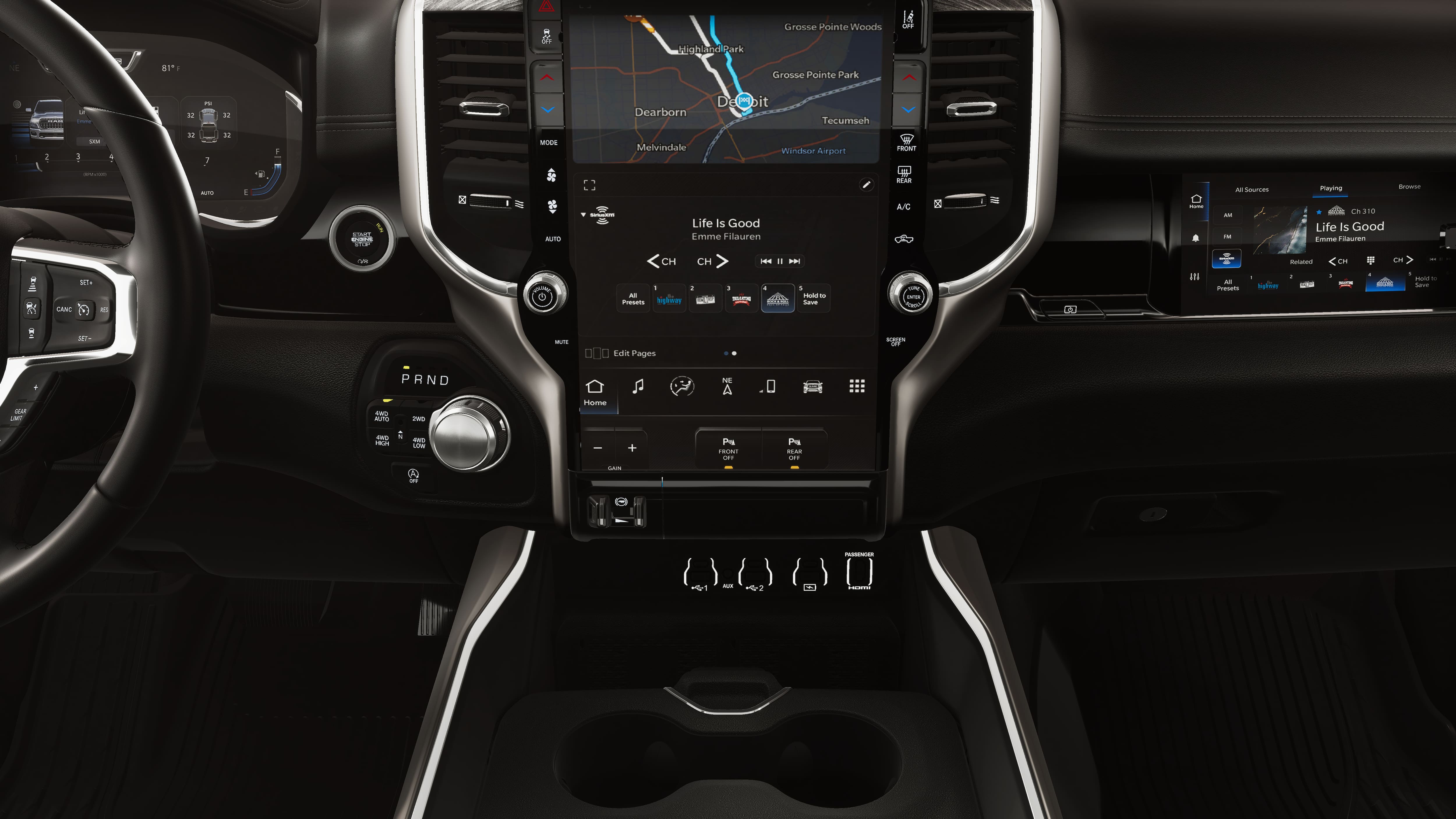 This vehicle offers Automatic Climate Control for personalized comfort. The vehicle has auto-adjust speed for safe following. This unit's Forward Collision Warning feature alerts drivers to potential front-end collisions. It offers Apple CarPlay for seamless connectivity. It offers Android Auto for seamless smartphone integration. See what's behind you with the back up camera on the Ram 1500. Never get into a cold vehicle again with the remote start feature on it. You'll never again be lost in a crowded city or a country region with the navigation system on this unit. Keep your hands warm all winter with a heated steering wheel in this vehicle . The state of the art park assist system will guide you easily into any spot. The leather seats in this vehicle are a must for buyers looking for comfort, durability, and style. Bluetooth® technology is built into it, keeping your hands on the steering wheel and your focus on the road.