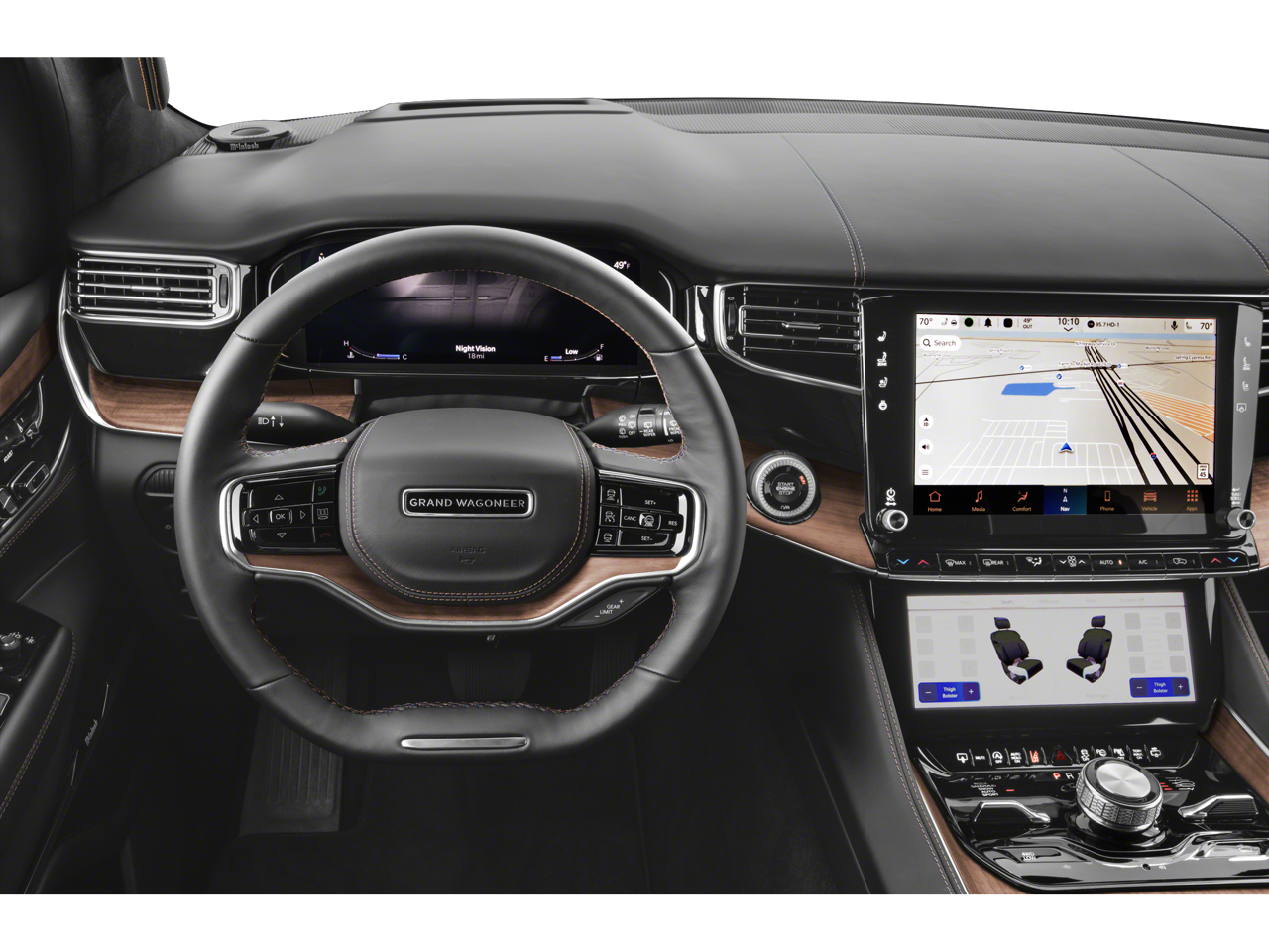 The leather seats in this Jeep Grand Wagoneer are a must for buyers looking for comfort, durability, and style. It's Forward Collision Warning feature alerts drivers to potential front-end collisions. This 1/2 ton suv has auto-adjust speed for safe following. Keep your hands warm all winter with a heated steering wheel in the Jeep Grand Wagoneer . Start this 2024 Jeep Grand Wagoneer from inside with remote start. This vehicle is a certified CARFAX 1-owner. Our dealership has already run the CARFAX report and it is clean. A clean CARFAX is a great asset for resale value in the future. This unit offers Android Auto for seamless smartphone integration. The vehicle offers Apple CarPlay for seamless connectivity. Protect it from unwanted accidents with a cutting edge backup camera system. The installed navigation system will keep you on the right path. Bluetooth® technology is built into this vehicle, keeping your hands on the steering wheel and your focus on the road.